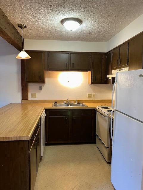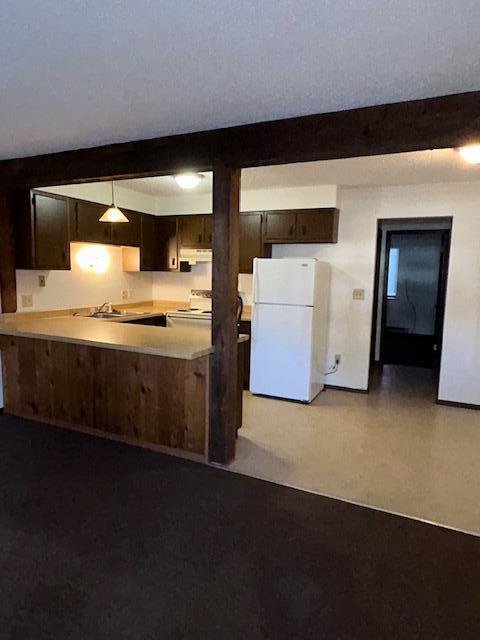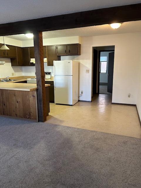 Kitchen with stove and refrigerator