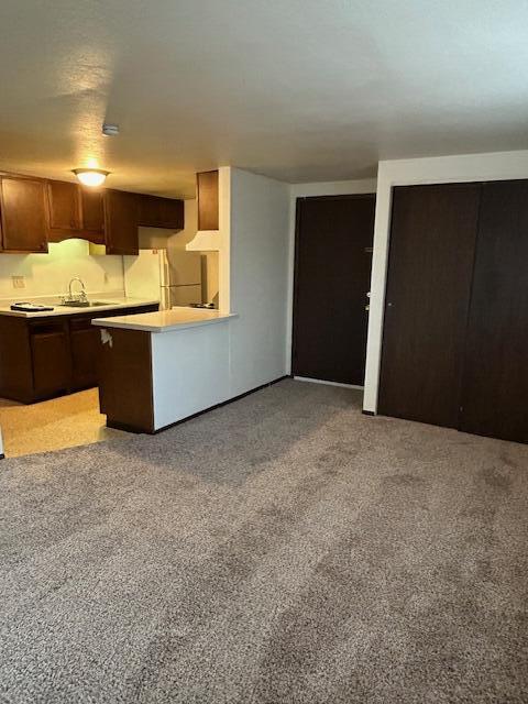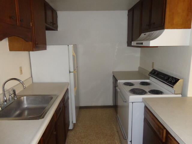 Kitchen with stove and refrigerator